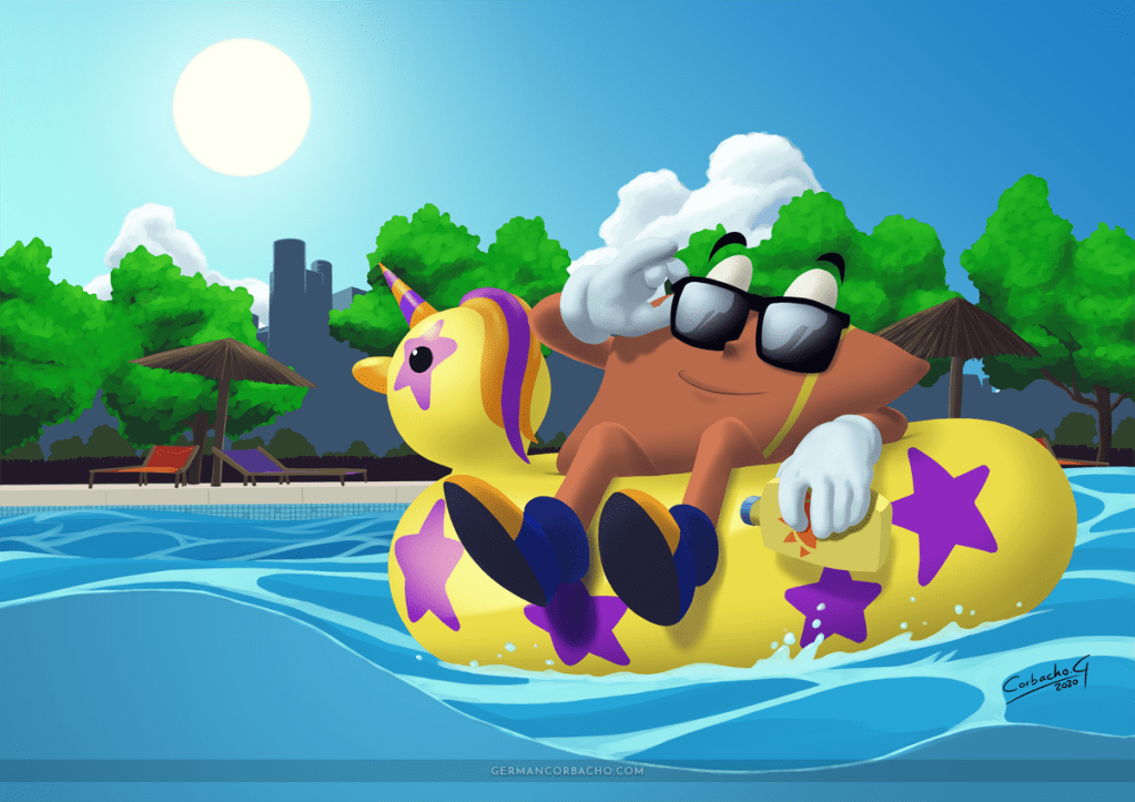 Ilustración realizada para la campaña de verano, con el objetivo de prevenir el cáncer de piel. Las personas trasplantadas están inmunodeprimidas para evitar el rechazo del nuevo órgano, y por ello, son más susceptiles a desarrollar un cáncer. La piel está especialmente expuesta, y es necesario tomar precauciones extra para evitar.